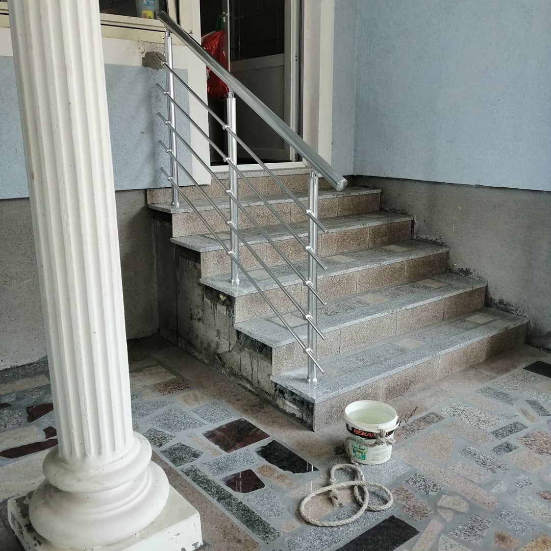 Алюминиевые перила на крыльцо с круглым профилем цвет серебро с прутикамиПерила алюминиевые и нержавеющие для крыльца с декоративными вставками, делаем перила любой конфигурации.510500