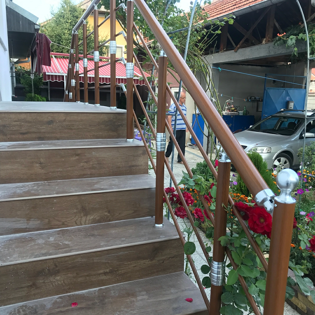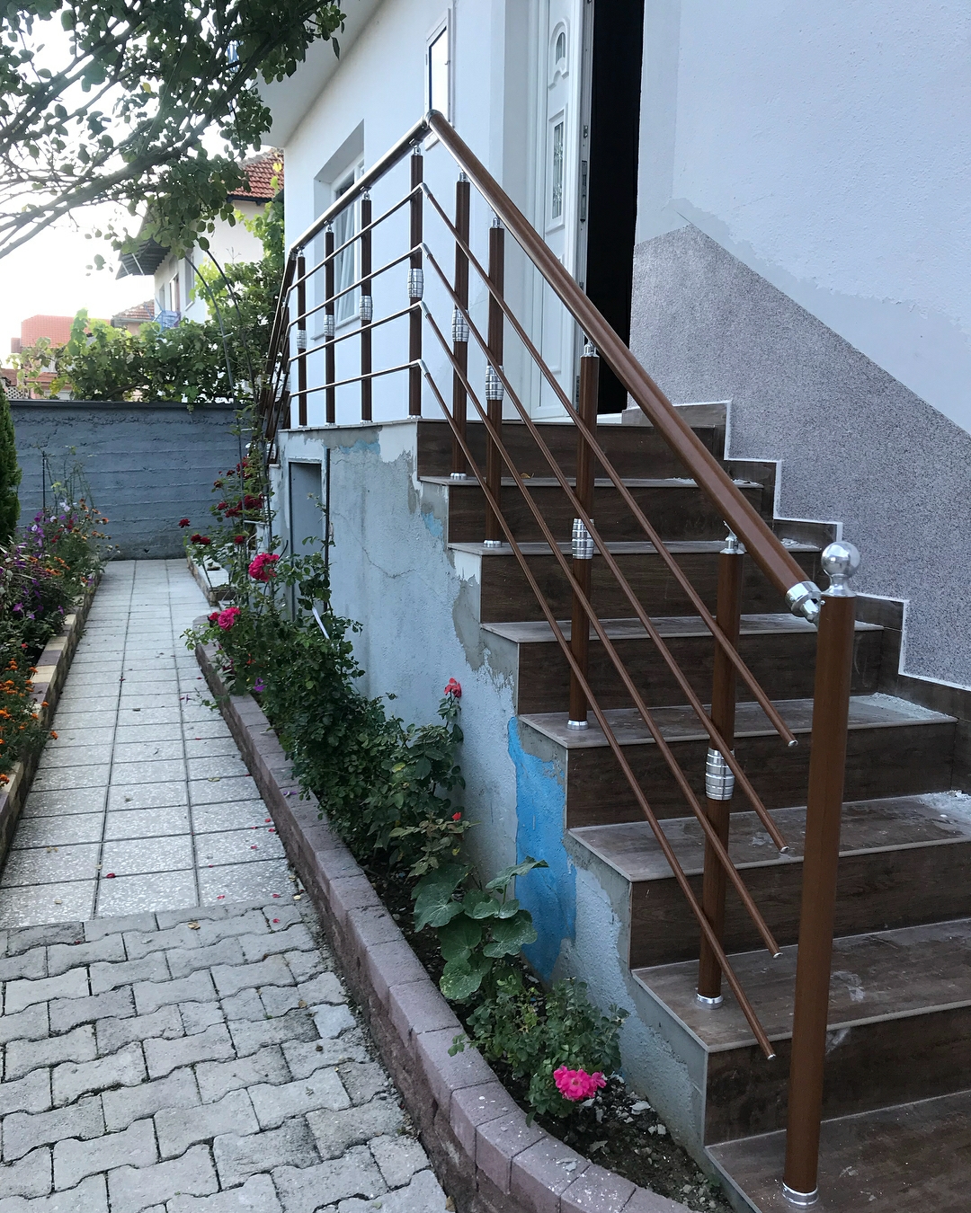 Алюминиевые перила на крыльцо круглый профиль эксклюзивный цвет с прутиками