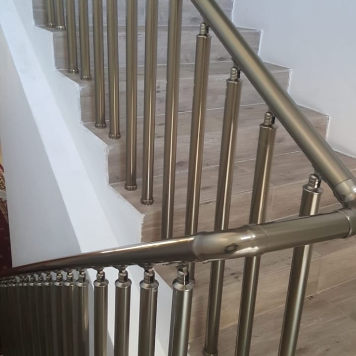 Перила алюминиевые для лестницы с круглым профилем цвет шампань без прутиков