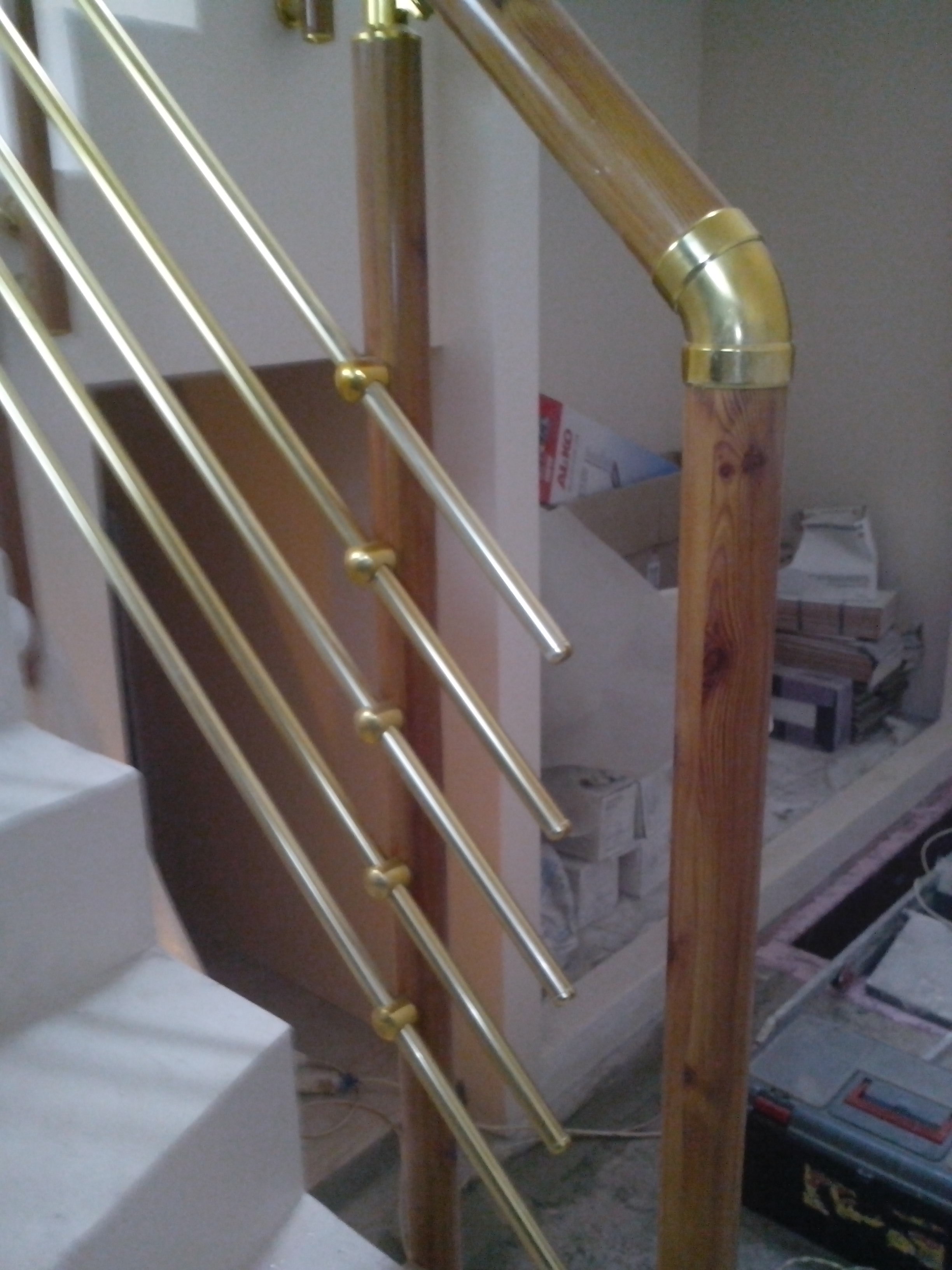 Перила алюминиевые на лестницу круглый профиль цвет ''под дерево'' с прутиками Алюминиевые перила в цвете "под дерево"