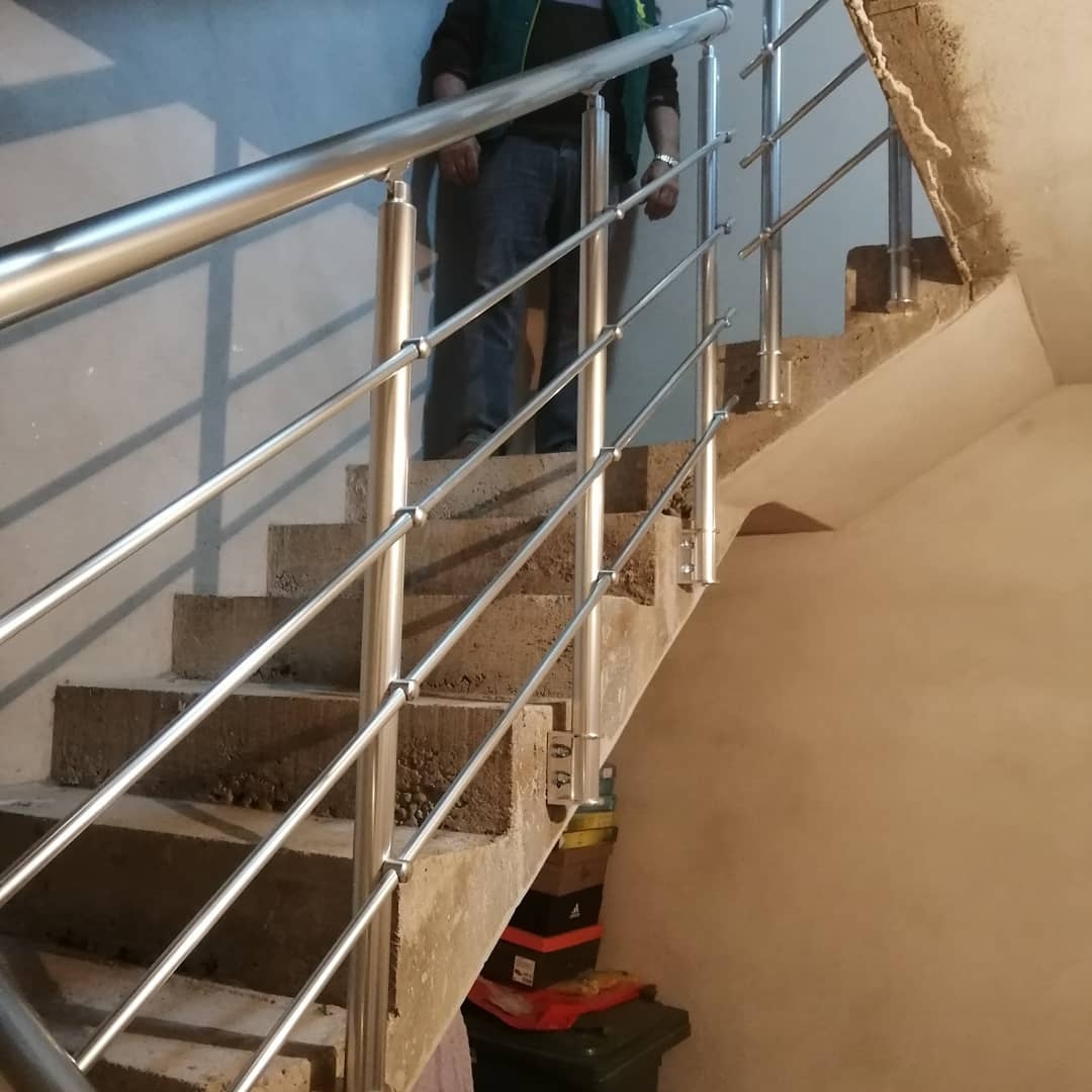 Перила алюминиевые на лестницус боковым креплением стойки круглый профиль цвет серебро с прутиками