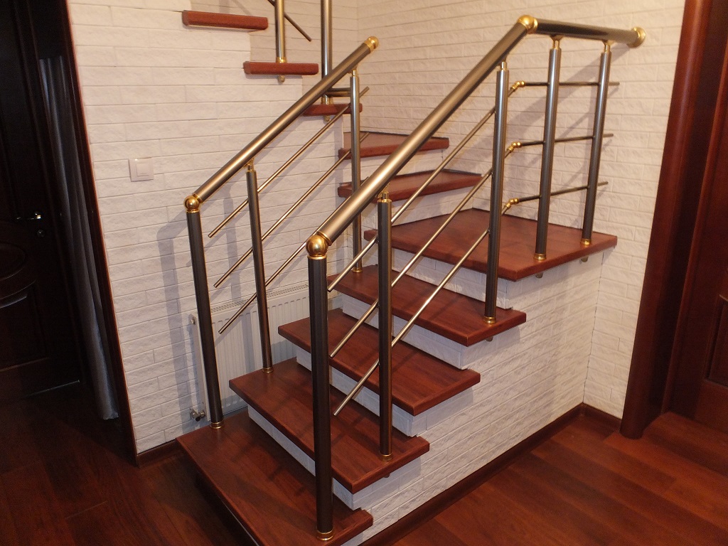 Перила алюминиевые на лестницу круглый профиль цвет щампань с прутиками
