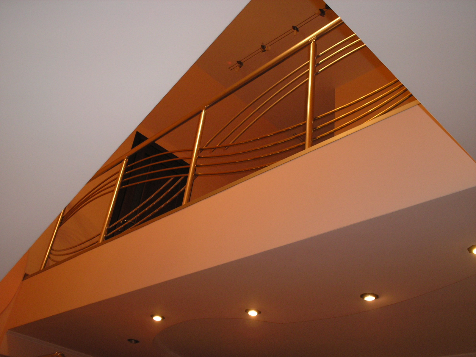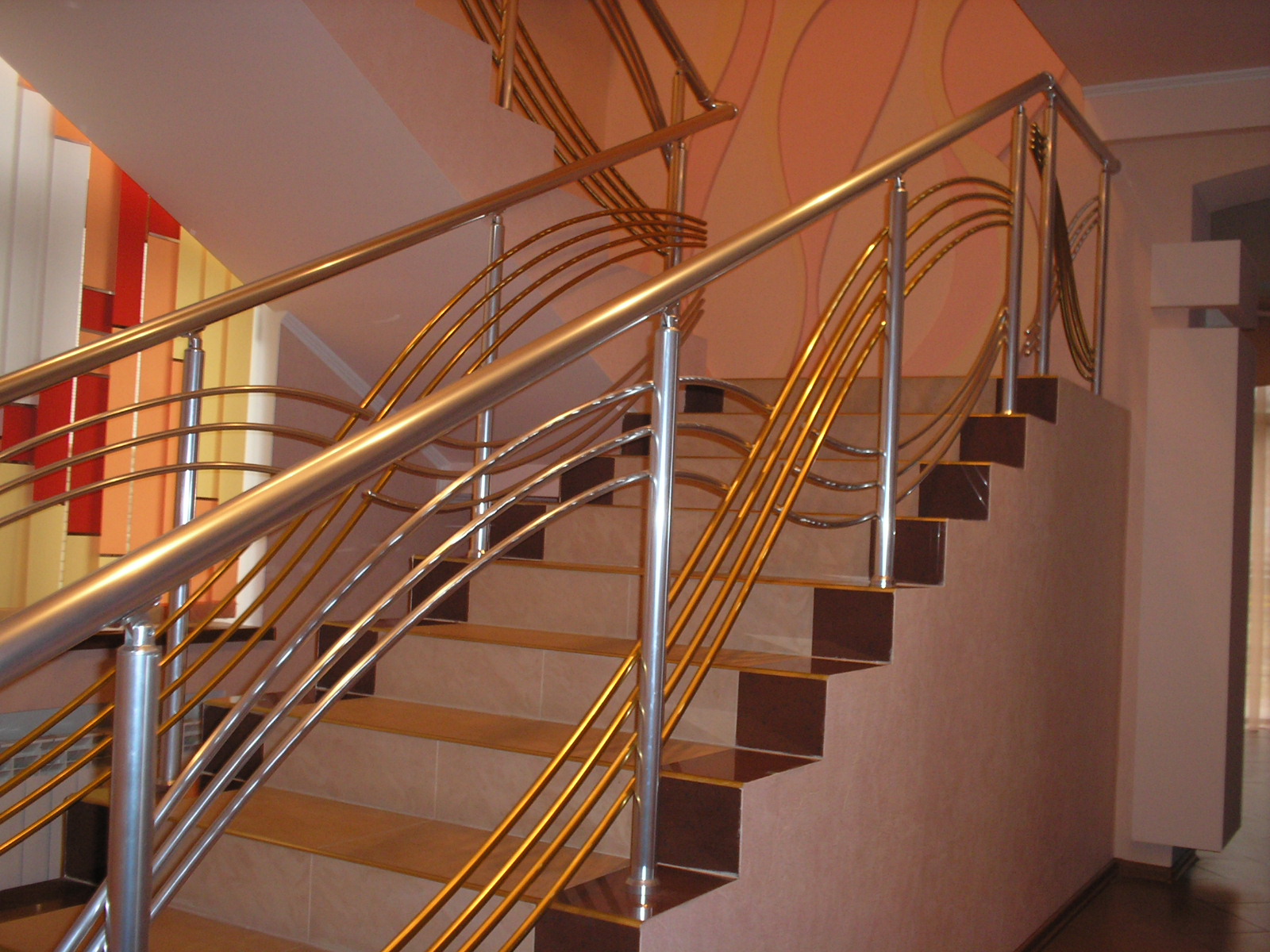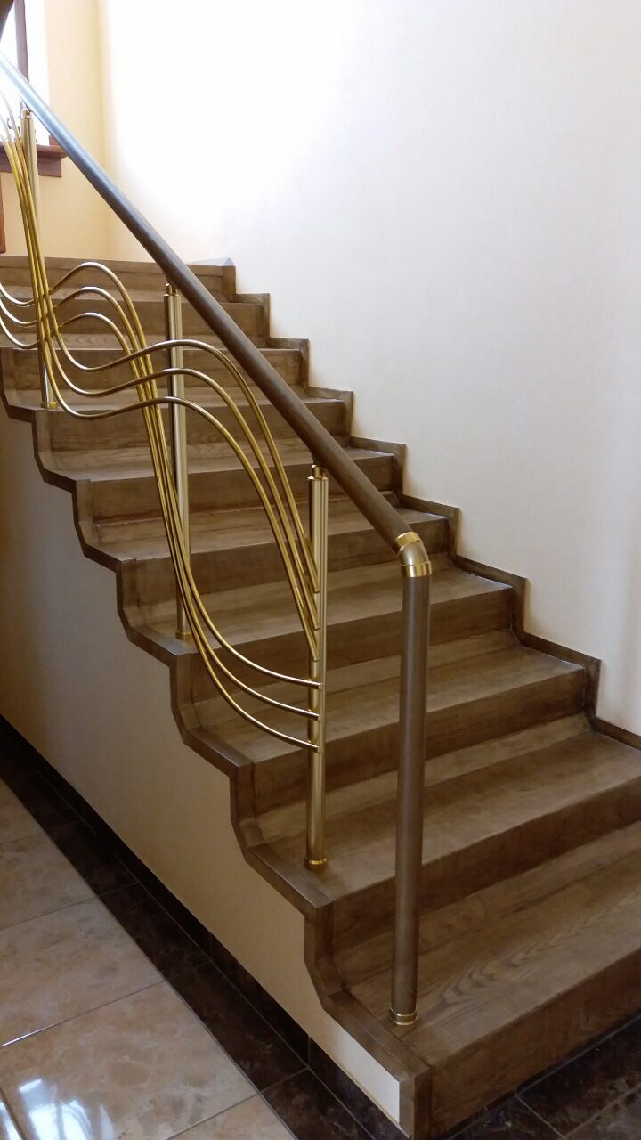 Перила алюминиевые на лестницу круглый профиль цвет золото с фигурными прутиками