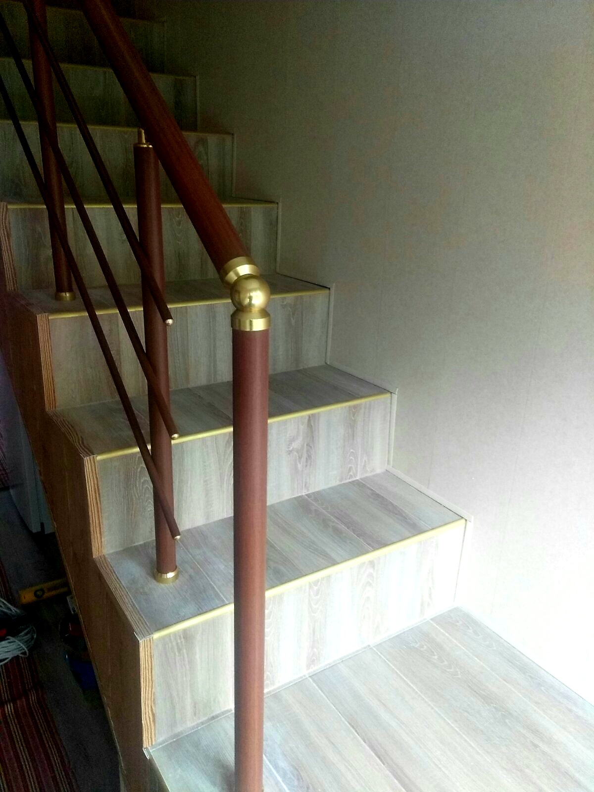 ПЕРИЛА АЛЮМИНИЕВЫЕ НА ЛЕСТНИЦУ КРУГЛЫЙ ПРОФИЛЬ ЦВЕТ ''ПОД ДЕЕРВО'' С ПРУТИКАМИ
