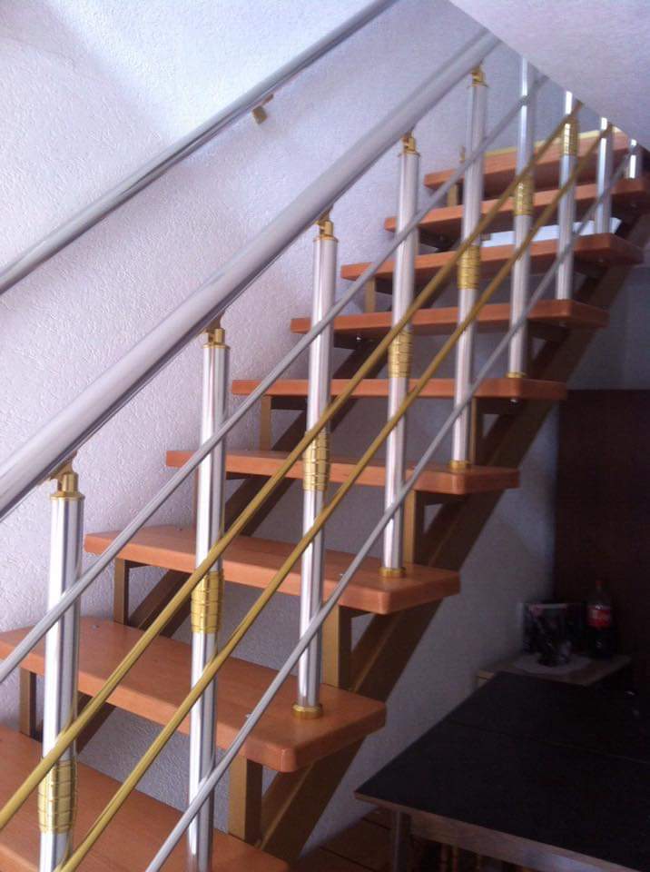 ПЕРИЛА АЛЮМИНИЕВЫЕ НА ЛЕСТНИЦУ КРУГЛЫЙ ПРОФИЛЬ ЦВЕТ СЕРЕБРО С ПРУТИКАМИСочетание серебра и золота удачно на деревянных лестницах и на ступенях из плитки.510500
