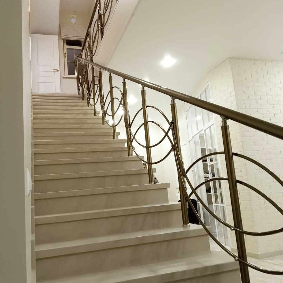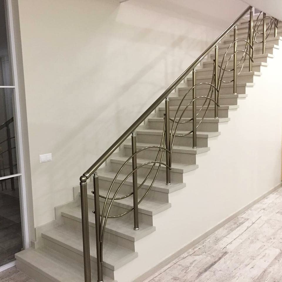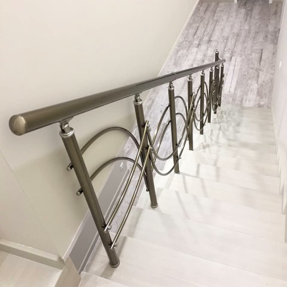 ПЕРИЛА АЛЮМИНИЕВЫЕ НА ЛЕСТНИЦУ КРУГЛЫЙ ПРОФИЛЬ ЦВЕТ ШАМПАНЬ С ФИГУРНЫМИ ПРУТИКАМИ