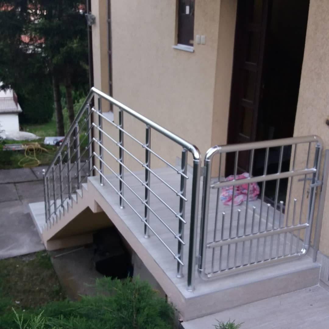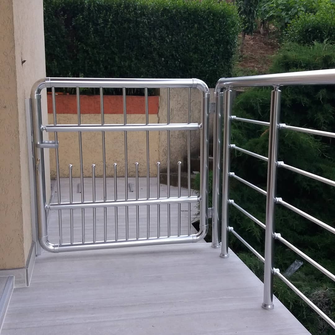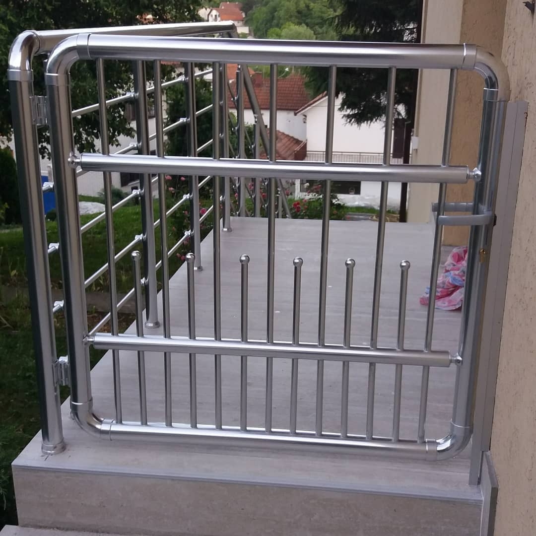 Алюмінієві поручні на ганках дуже часто роблять з хвірткою.