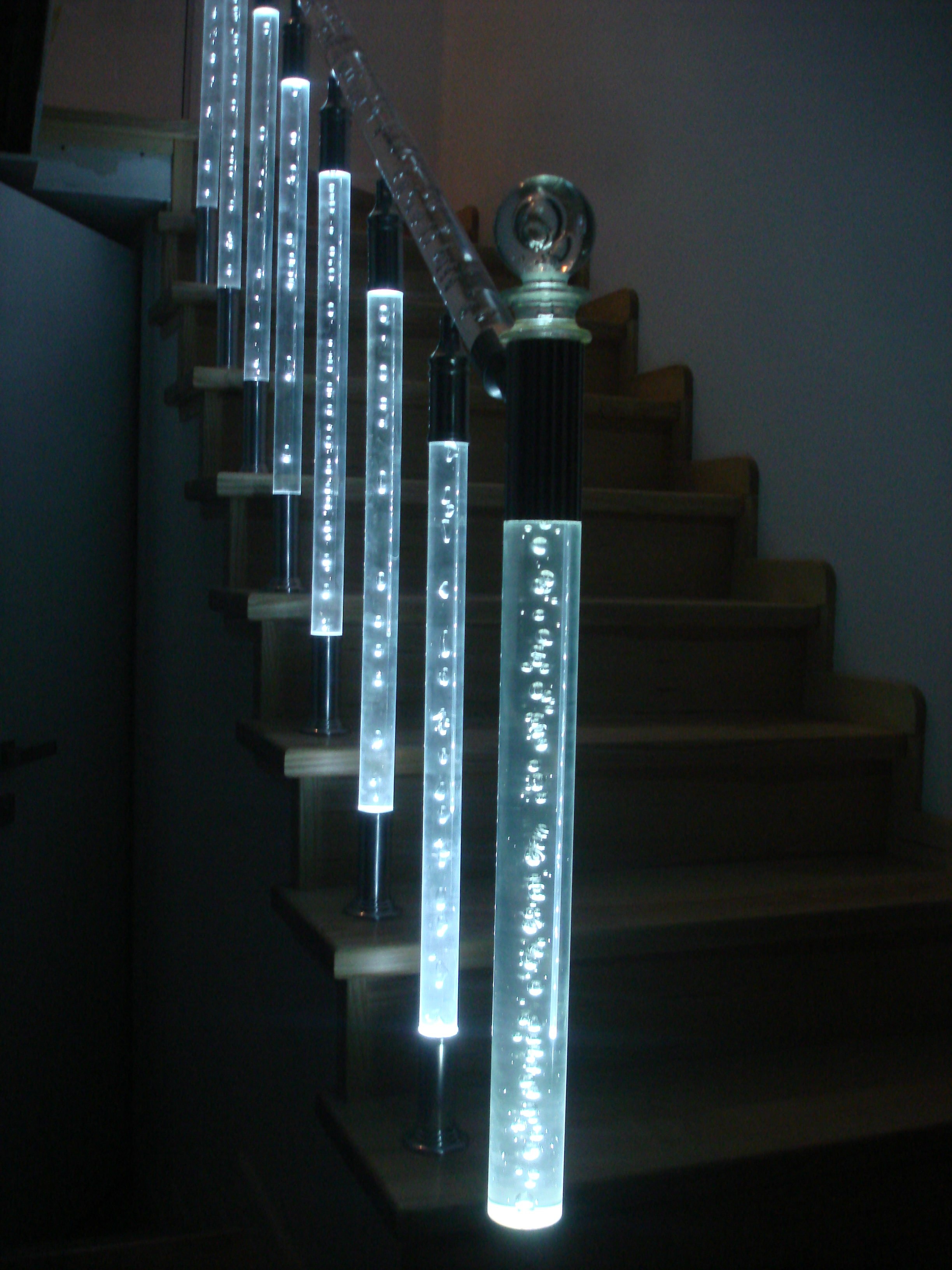 - Стойки очень просто оборудовать подсветкой. Любого цвета. Очень широкий выбор света.