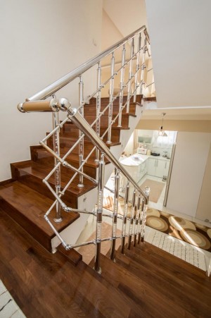 Преимущества : - Плексиглас — это акриловое стекло высокого качества. Не имеет аналогов по сочетанию прочности, безопасности и прозрачности.. - Ударопрочность. Стойкость к механическим воздействиям превышает показатели кварцевого стекла в 5 раз. - Стойки очень просто оборудовать подсветкой. Любого цвета. Очень широкий выбор света. - Стойки могут быть разной формы и разного цвета. - Поручень может быть : прозрачный с пузырьками, алюминиевый любого цвета, деревянный любого цвета.