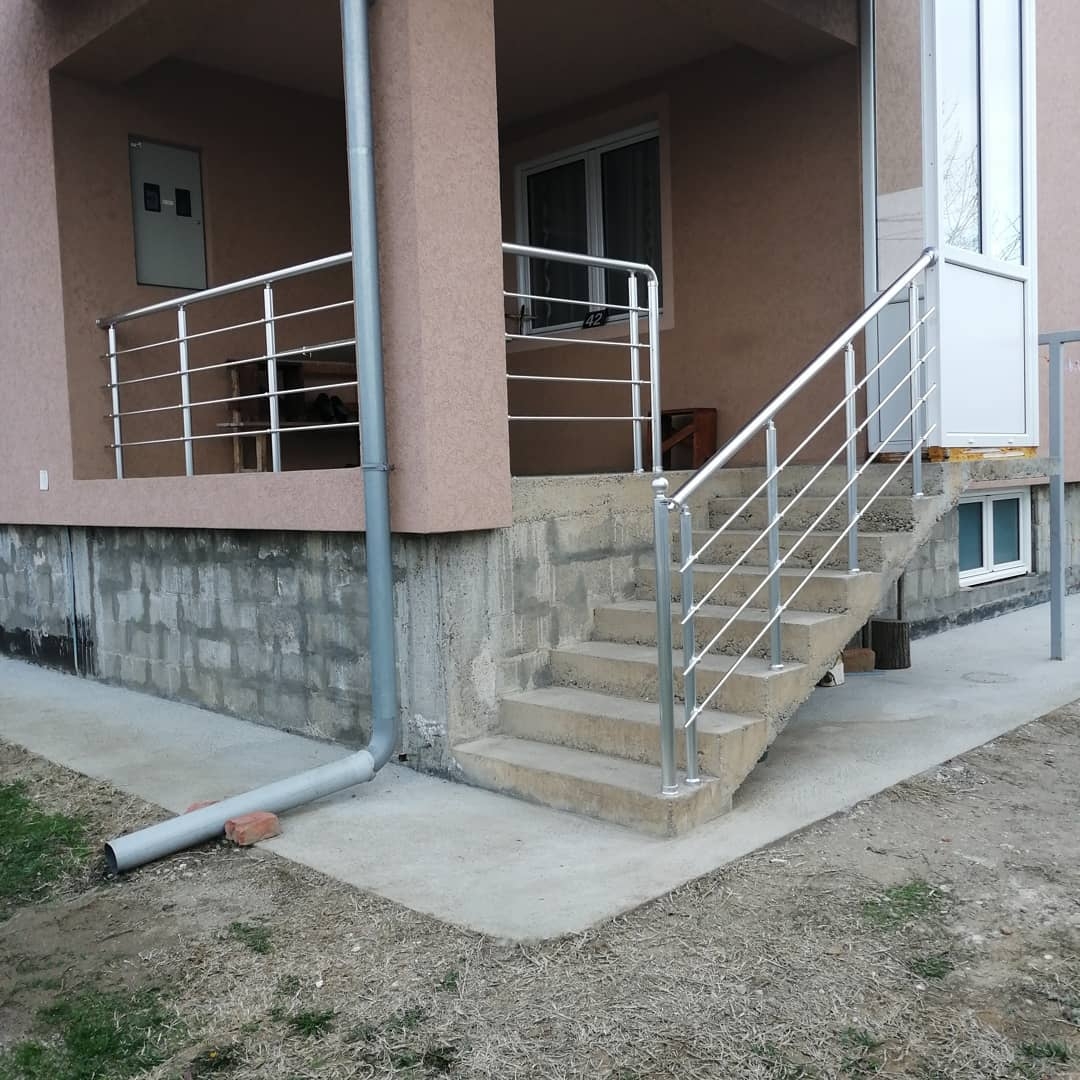 Поручні алюмінієві на ганок круглий профіль колір срібло з прутиками