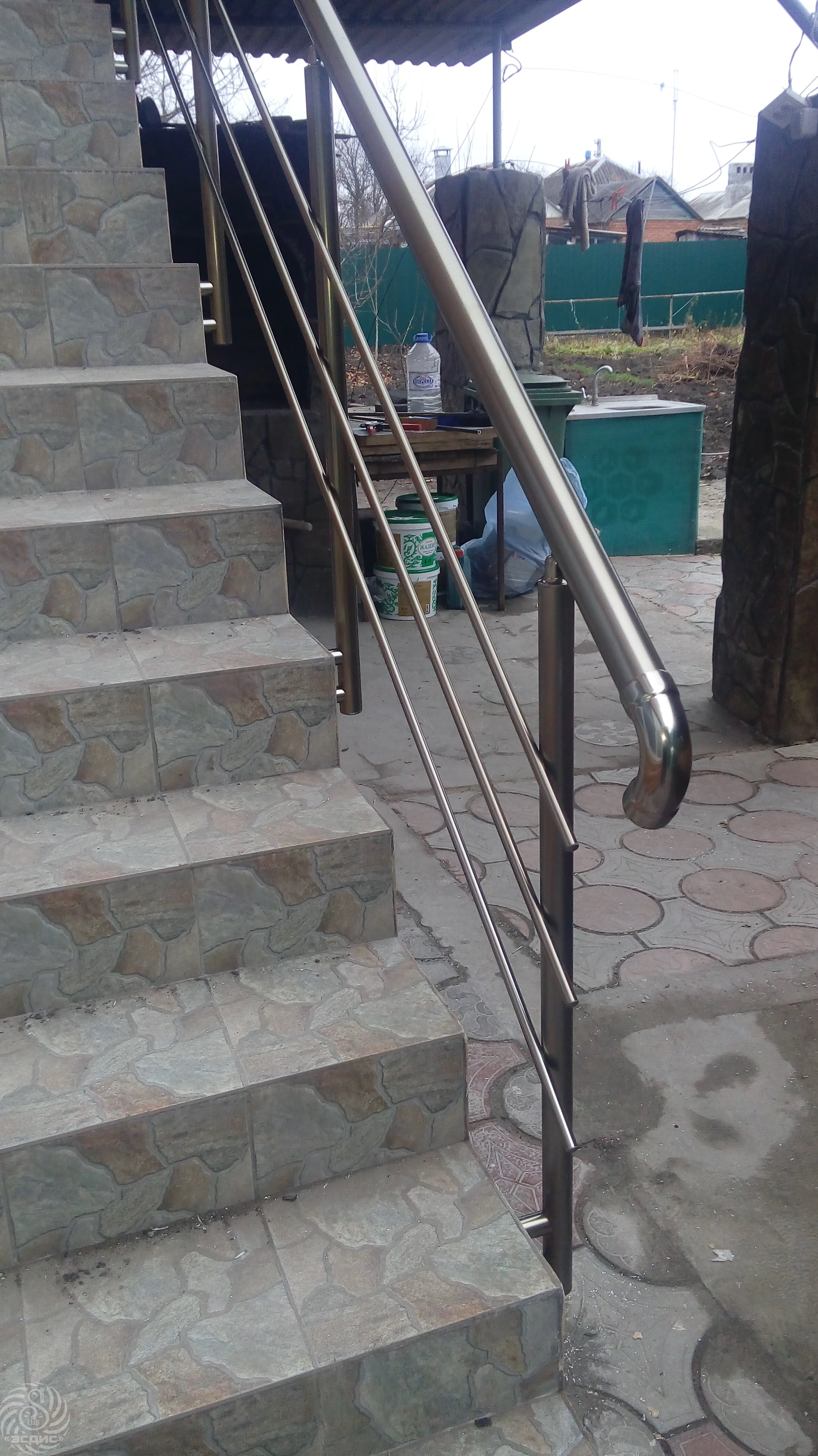 Поручні алюмінієві на ганок круглий профіль колір шампань