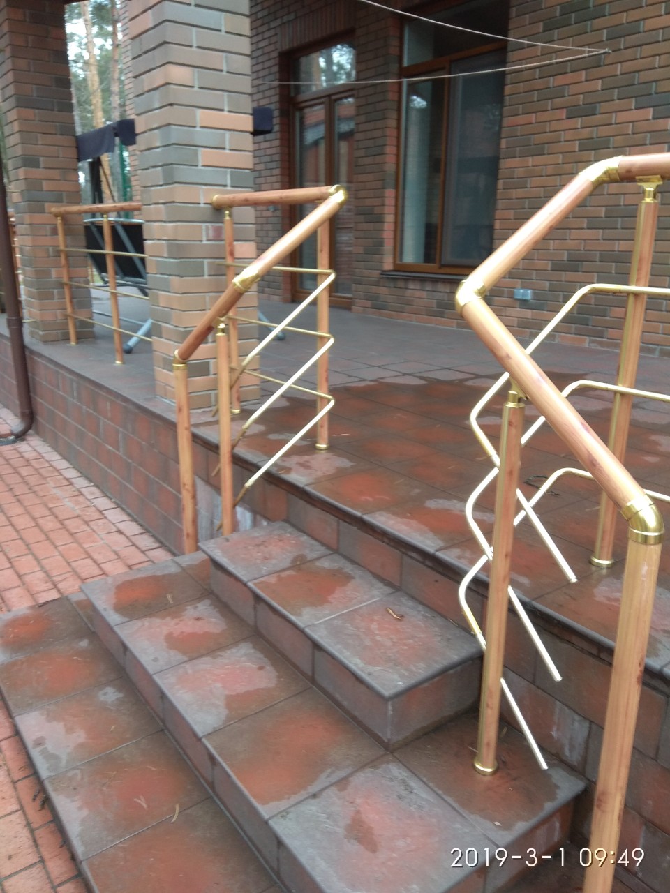 Поручні алюмінієві на ганок круглий профіль колір під дерево