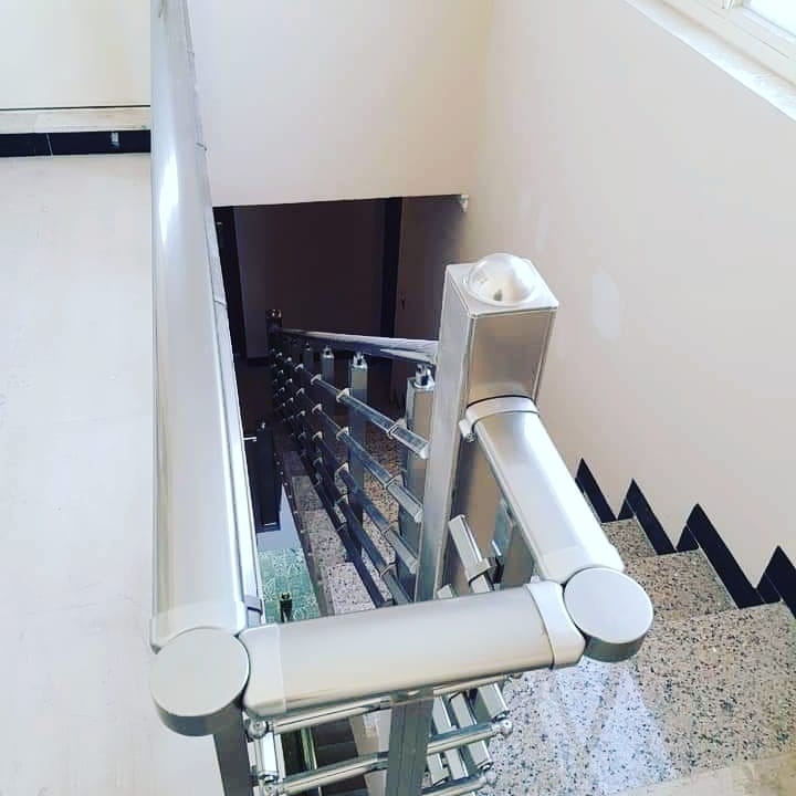 Дизайнерський варіант алюмінієвих поручнів овальний поручень і квадратні стойки.