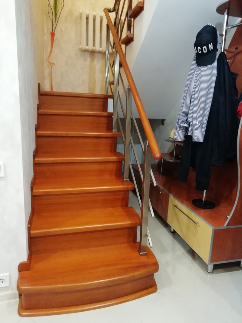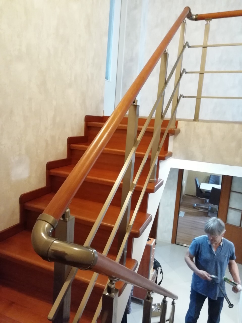 Якщо у Вас сходи з дерева - поставимо дерев'яний поручень і пофарбуємо його під колір сходів.
