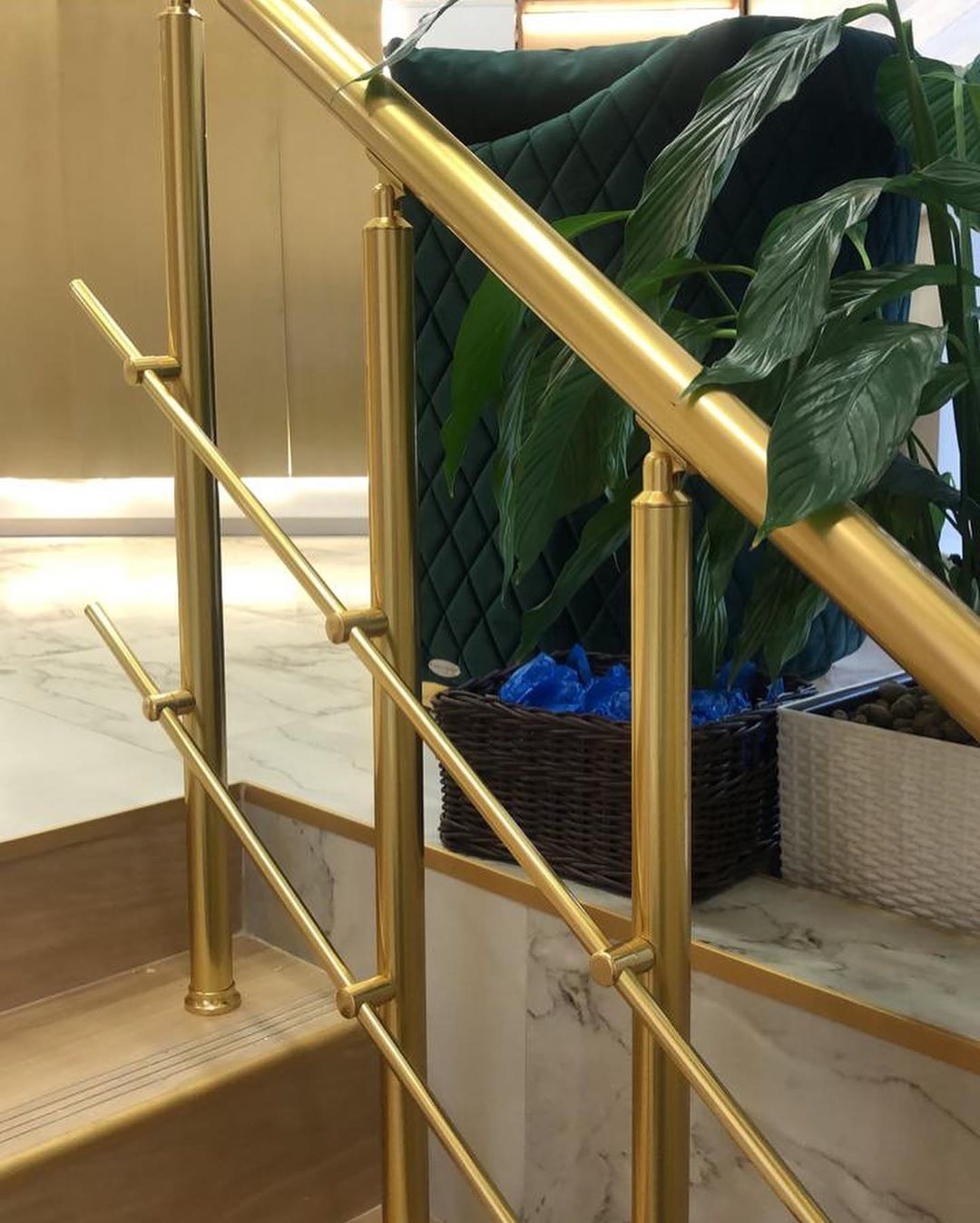 Перила алюминиевые профиль круг цвет золотоПерила алюминиевые в цвете золото смотряться круто при уместности золотого цвета в интерьере. Покрытие - фабричная Турецкая анодация - очень надежно.510500