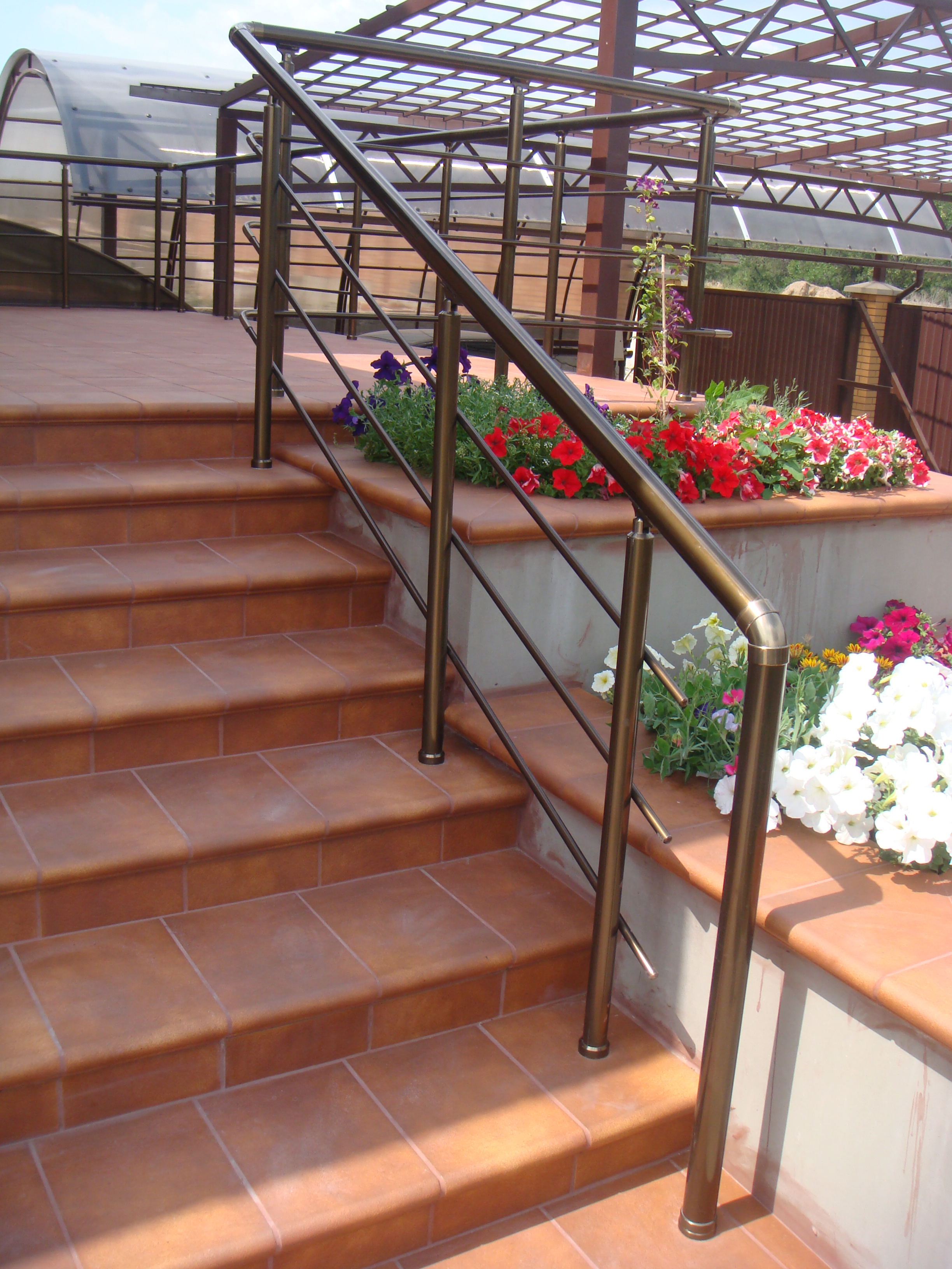 Перила для крыльца из алюминия с круглым профилем цвета бронза